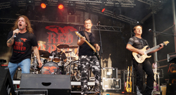 Martin Reichhart (Bass), Holger Schmaltz am Schlagzeug und Sänger Martin Hermann nicht beeindrucken. Man hatte eher den Eindruck das RED RAVEN den Anwesenden nun erst recht zeigen wollte,