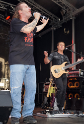 wie ein Derwisch über die Rockbühne und ließ keine Gelegenheit aus das Publikum mit in den Auftritt einzubinden und anzufeuern.