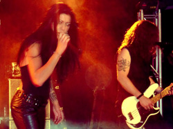 Meyer ("Voodoo Circle", ex-"Domain", ex-"Casanova") am Bass einen bekannten