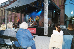 Das zweigeteilte Konzert auf dem schön gestalteten Joseph-Krekeler-Platz vor dem Forum Alte Post war schon im Vorverkauf mit 250 Besuchern restlos ausverkauft.