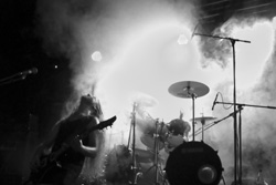 Mit seinen typisch tiefen Growls zog uns Sänger Daniel gleich in seinen Bann und die sphärische Musik unterstützt das nur noch.